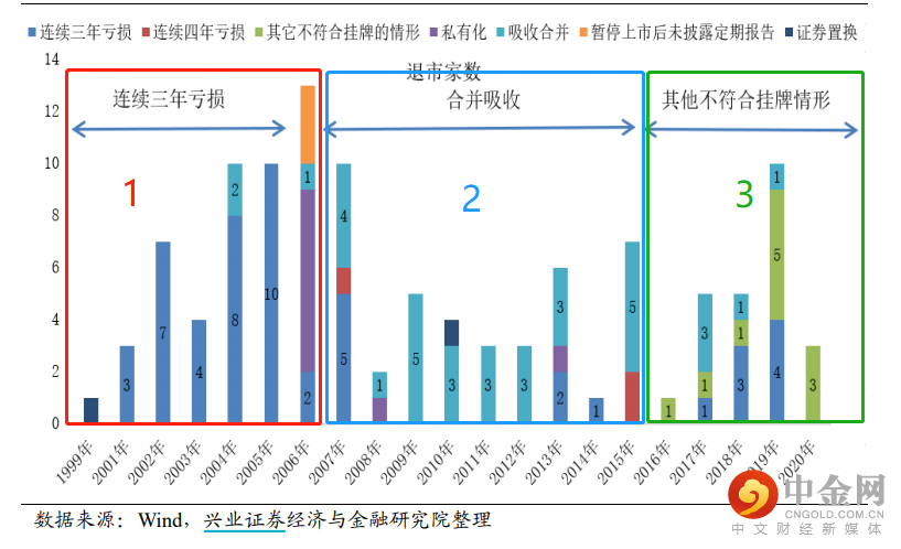 A股2005年之前退市原因多为连续3年亏损,当时刚加入WTO,中国企业的韧性较差,上市后业绩突然变脸的概率大,所以这个时间段退市多因连续亏损所致;