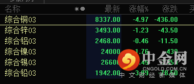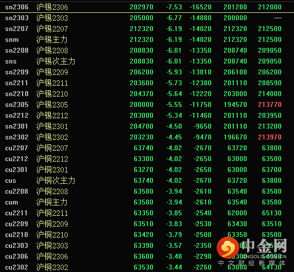 周四国内期货市场日盘时分,沪镍跌超5%;沪铜跌超2%;沪铝跌超1%且盘中跌至六个月来新低;沪锡跌超6%至2021年7月来最低,5个交易日跌超10%。夜盘时分,沪锡继续跌超4%,沪锌和沪铜跌逾1%,夜盘收盘时,沪铜跌4%,沪铝和沪铅跌0.6%,沪锌和沪镍跌2.6%,沪锡跌6.2%。