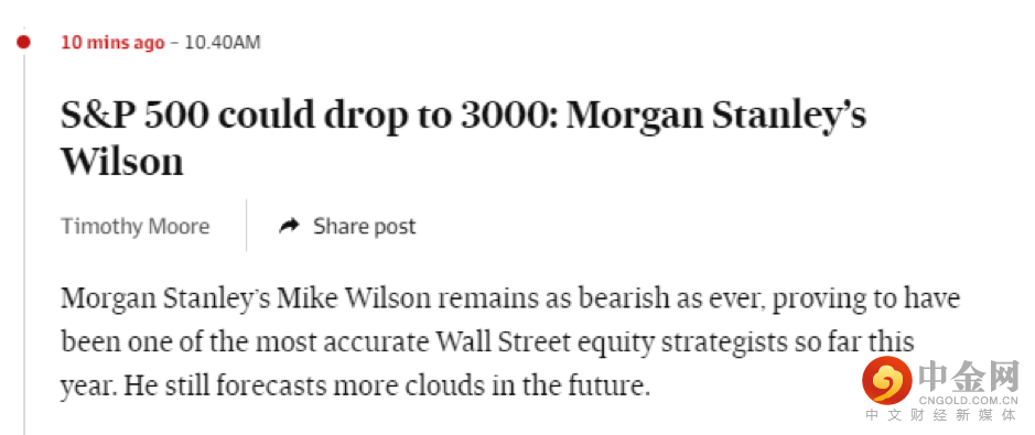 两天后,摩根史丹利同样给出了一样的预测——标普500指数3,000点就是底部。