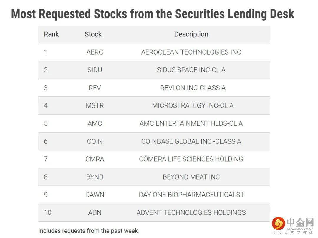 下表中列出的是2022/6/16借入需求最高的10个证券。