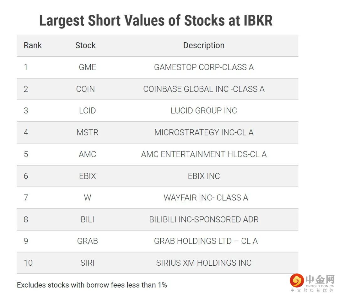 盈透证券借贷服务:最大做空值证券、最难借入证券、最高借入费用证券