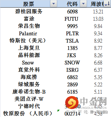 研讨会相关标的周涨幅榜
