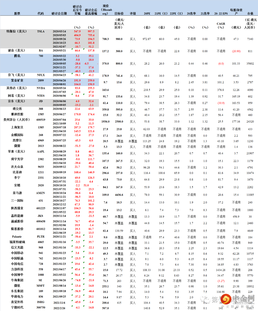 数据来源:彭博、第一上海,注:现价为2022年06月22日收市价
