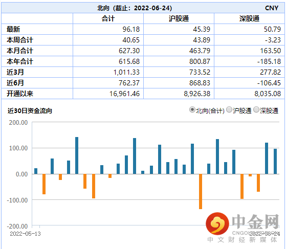 本周五个交易日,北向资金整体以净流入为主,合计净流入40.65亿元。其中周四北向资金净流入120.33亿元资金。(见图4)