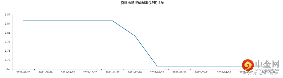 6月20日,新一期LPR(贷款市场报价利率)报价出炉。6月20日,央行授权全国银行间同业拆借中心公布,2022年6月20日LPR为:1年期LPR为3.7%(见图7),5年期以上LPR为4.45%(见图8)。以上LPR在下一次发布LPR之前有效。