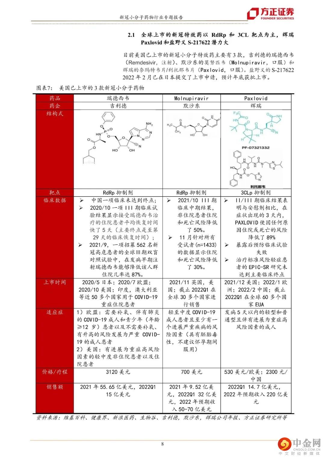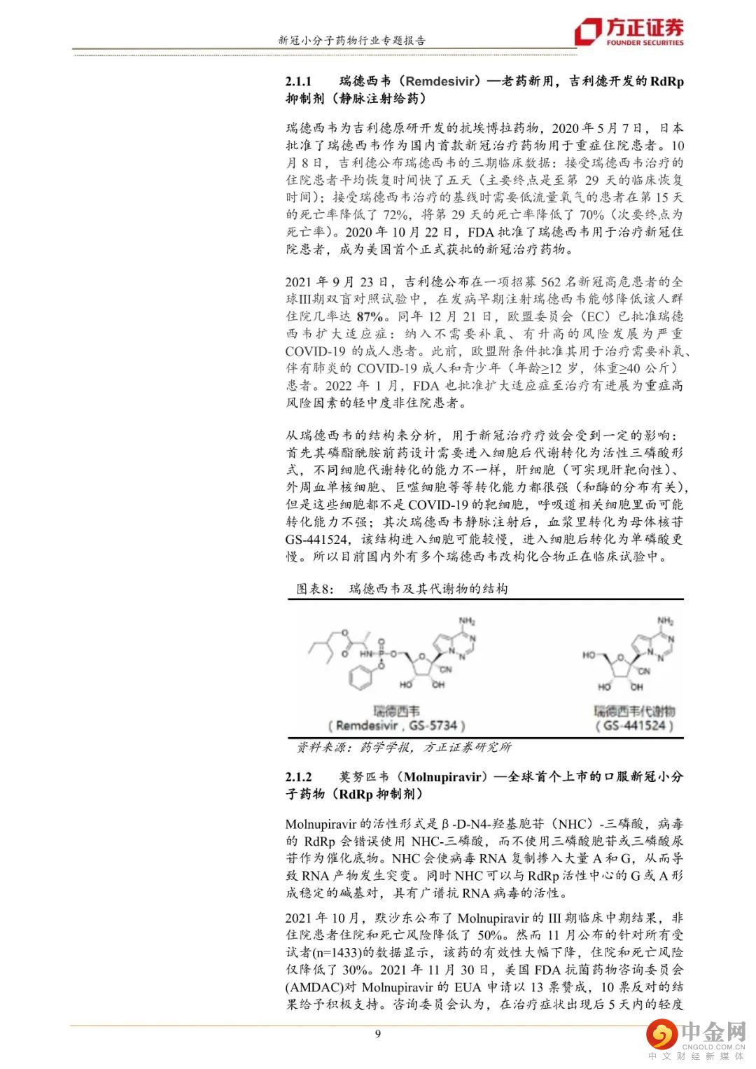 ①莫努匹韦(Molnupiravir)—全球首个上市的新冠小分子口服药物(RdRp抑制剂):可将非住院患者住院和死亡风险降低30%-50%。