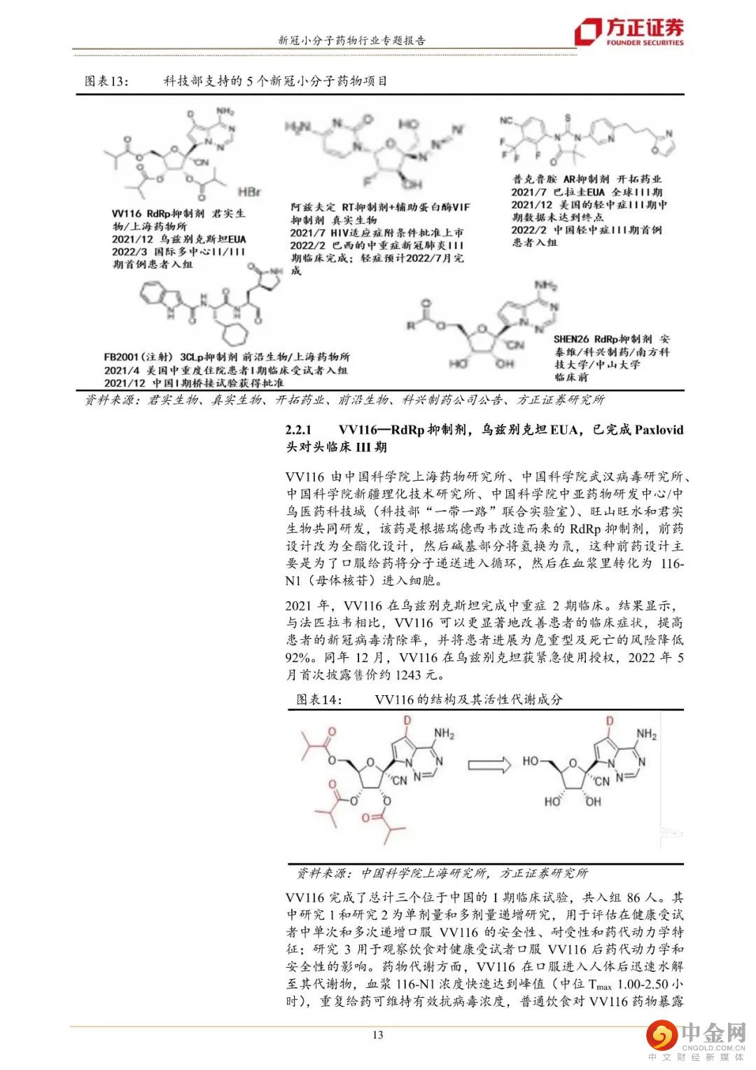 ①VV116—君实生物与旺山旺水合作开发的RdRp抑制剂,已获得乌兹别克坦EUA,头对头辉瑞Paxlovid的临床试验已达到临床终点,正在上市申请阶段。