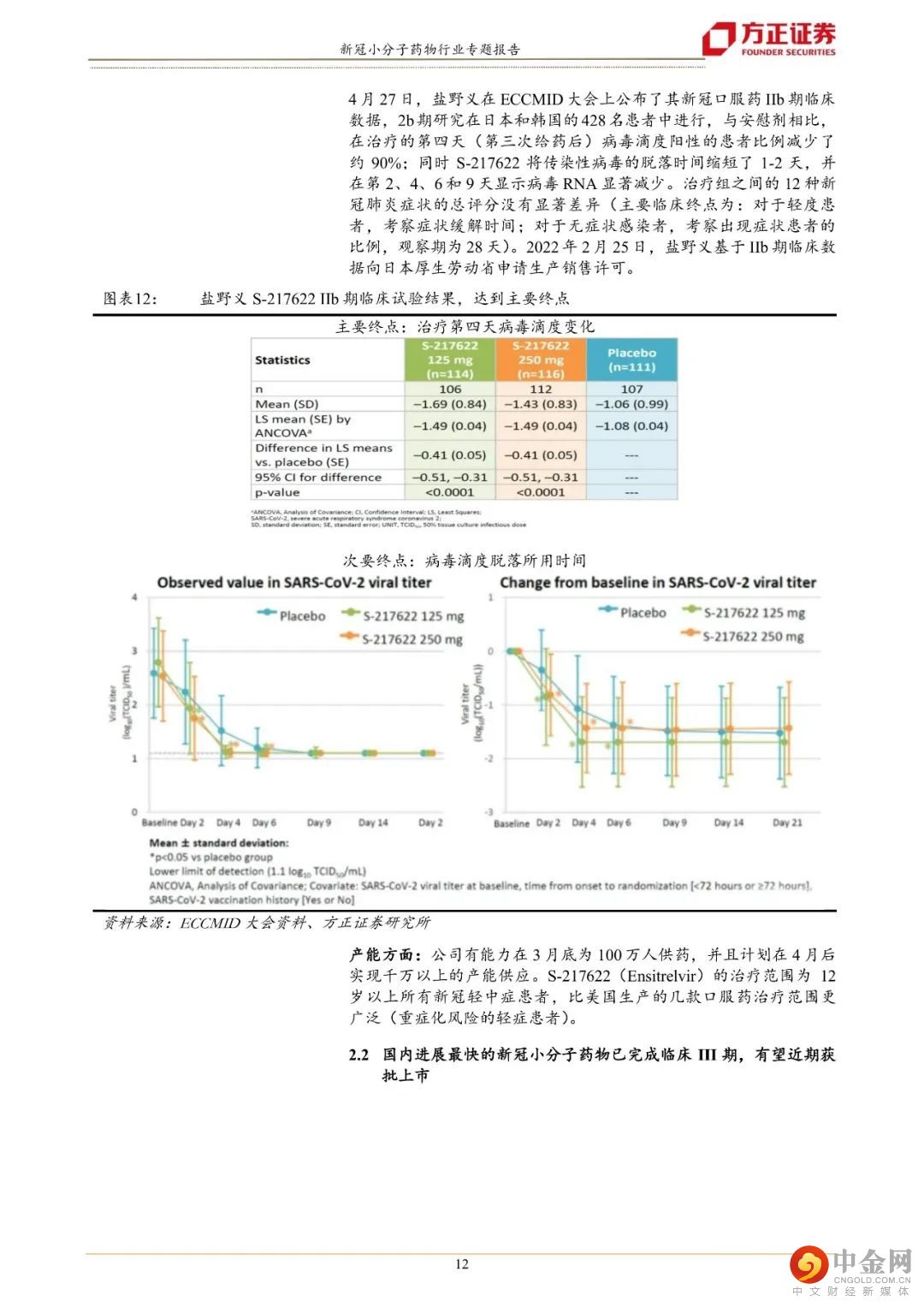 国内进展最快的口服新冠小分子药物已完成临床III期,有望近期上市: