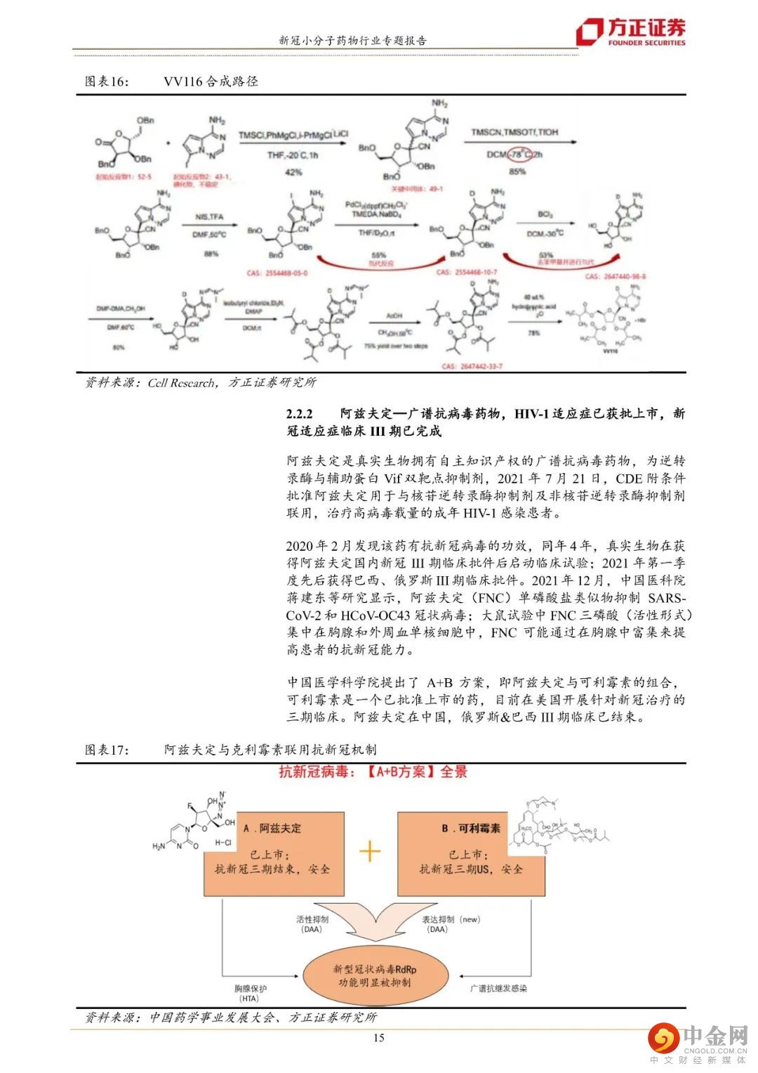 ②阿兹夫定—真实生物开发的广谱抗病毒药物,HIV-1适应症已获批上市,新冠适应症正在上市申请阶段。