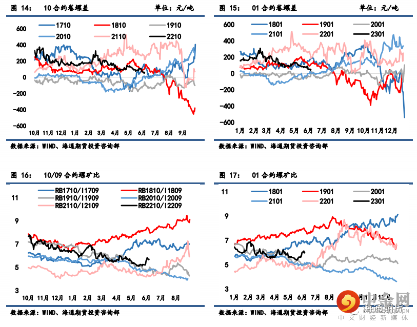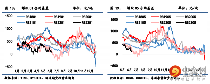 螺纹 01 合约基差从 253 缩小至 98 元/吨,螺纹 05 合约基差从 313 缩小至 144 元/吨,螺纹 10