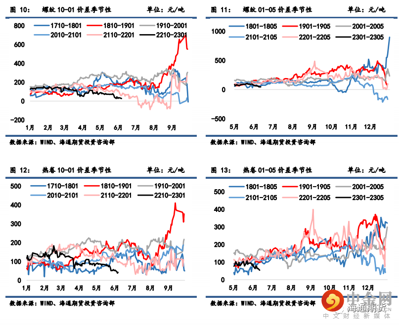 螺纹 10-01 月间价差从 37 微降至 27 元/吨;热卷 10-01 月间价差从 53 微降至 42 元/吨。上周热
