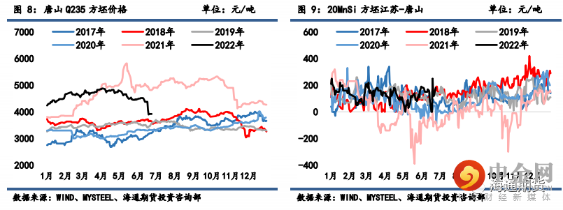 下跌 460 元/吨至 4020 元/吨,江苏 20MnSi 下跌 280 元/吨至 4200 元/吨,江苏和唐山间价差升至 180