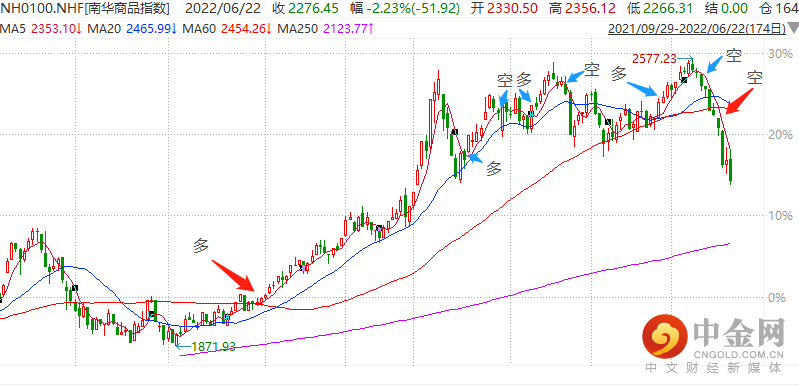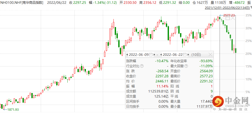 受美国加息超预期影响,商品类资产出现了普跌,南华商品指数近期跌幅较大,截至6月22日,最近10个交易日跌幅超10%。