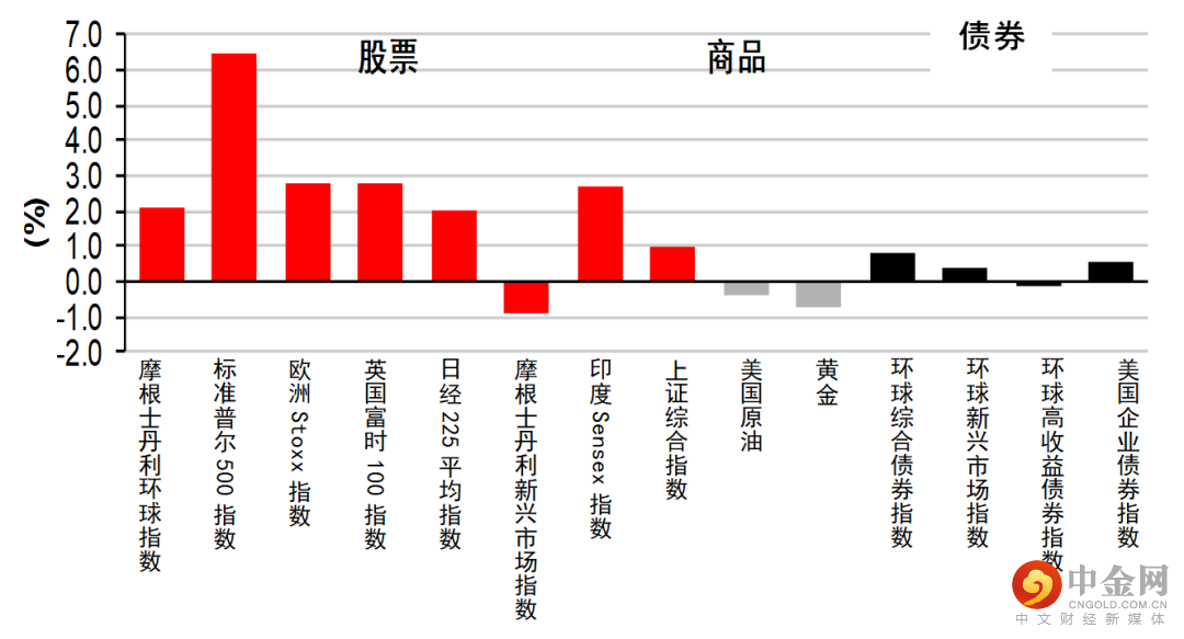 美股上周上扬,科技股表现领先,因政府债券息率回落,增加了未来盈利的吸引力。股市在近期大跌后,也有出现低位买盘的迹象。整体而言,标普500指数升6.4%,科技股主导的纳斯达克指数升7.5%。加拿大S&P/TSX综合指数升0.7%。