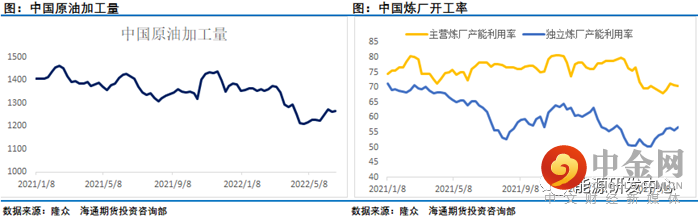 而近期原油需求侧因糟糕的经济形势面临一些不确定性,这也让原本北半球消费旺季预期强劲需求的局面迎来考验,另外我们跟踪国内原油市场高频数据可以看到国内原油消费仍在恢复,还没有恢复到正常水平,恢复进程看起来比较缓慢,目前时间已经到了6月底,恢复延迟不断地超出市场预期,如果这个时间段被拉长意味着今年中国原油需求变化将继续下修。总体来说需求端近期展望趋于谨慎,需要接下来一些实际数据的验证,API数据美国汽油意外累库就是一个警示信号。