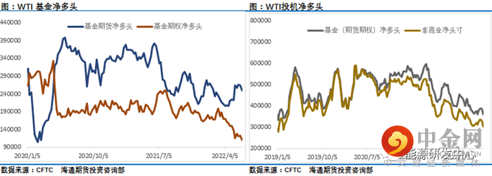 正所谓春江水暖鸭先知,油价大跌之际对冲基金迅速坚持了原油净多持仓,上周布伦特原油期货投机性净多头头寸减少30418手合约至208918手合约。美国商品期货交易委员会(CFTC)数据显示,截至6月21日当周,纽约商品交易所WTI原油净多头头寸减少31972手合约至234012手合约;其中多头寸仓位下降28777手至261295手合约,为近两年多最低记录,空头寸增加3195手至27283手,为近两个月新高。