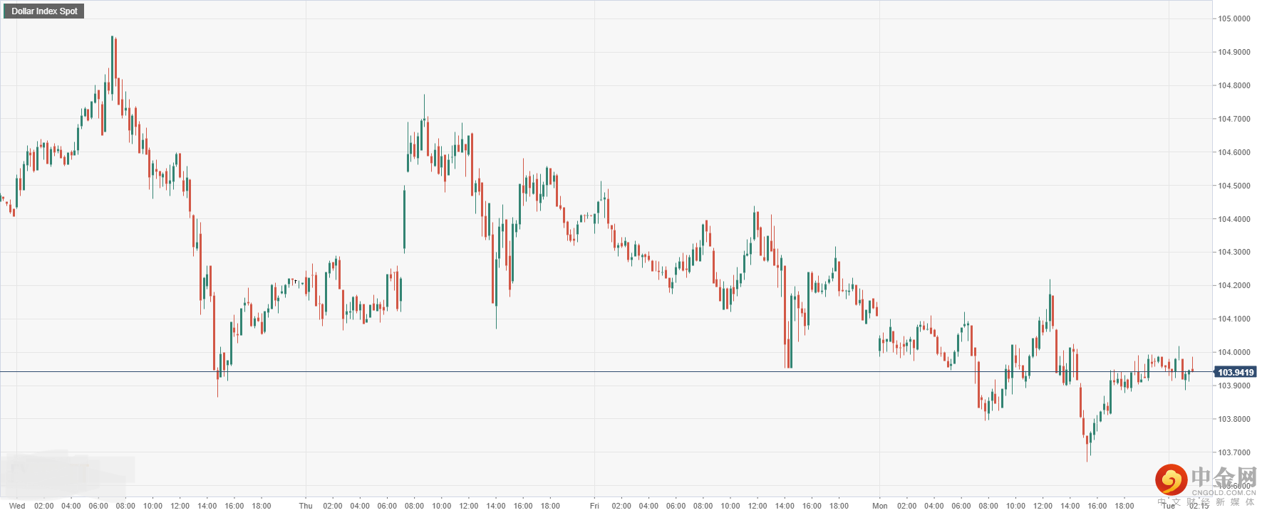 美元指数周一收盘窄幅震荡回落后,今日开盘跌至103.94附近,因通胀预期软化促使市场重新评估美联储激进加息的前景,导致美元下行疲软。