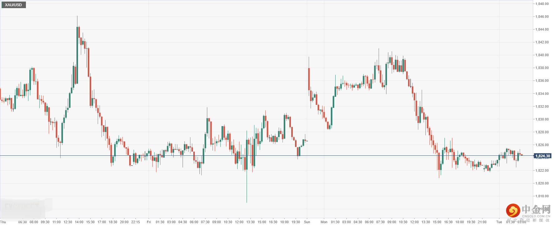 § 贵金属方面:黄金兑美元下跌至1824.30。