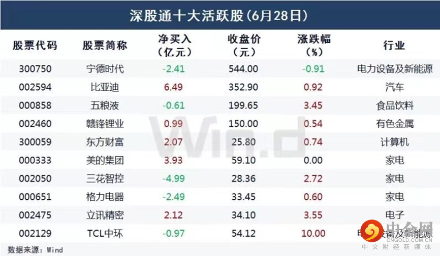 上证指数先抑后扬,午后多头再度发力,一举拿下3400点关口,北向资金积极回场,创业板指跟随翻红,宁德时代、迈瑞医疗、亿纬锂能逆市录跌。大市成交1.22万亿元,上日为1.23万亿元。北向资金14:00准点发车进场,带动指数扶摇直上,全天再度净买入46.48亿元,其中沪股通净买入16.86亿元,深股通净买入29.62亿元。6月以来北向资金累计加仓近750亿元,冲击历史最高月度净买入纪录。历史最好成绩为去年12月创造的890亿元净买入纪录。贵州茅台、比亚迪、美的集团分别获净买入6.58亿元、6.49亿元、3.93亿元。紫金矿业净卖出额居首,金额为5.46亿元。