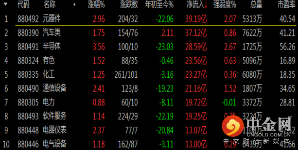 板块资金进出排名
