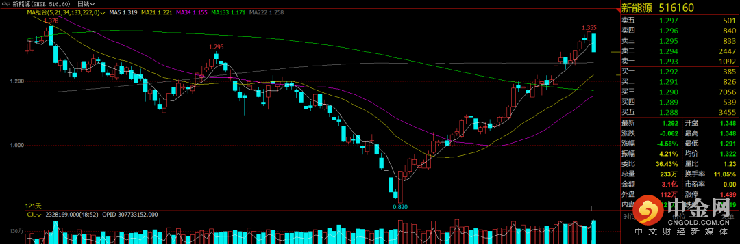 周三A股出现调整,前期不断逼空的新能源整车及光伏等高位品种出现较大分歧,部分个股暴跌,引发指数回调。沪指下跌-1.4%,创指下跌-2.53%,两市近4000只个股收绿,市场量能放大到1.3万亿,北上资金小幅净卖出。