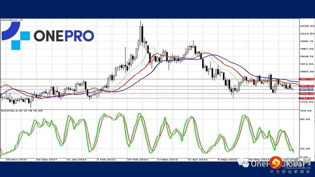 道琼指数的日线技术指标中,Alligator依旧呈现死亡交叉,长线的空头走势没有改变,KD指标也已经开始转为死亡交叉,表示短线上空方也开始掌握优势,接下来几天道琼指数应该会再度开始承受拉回的压力。