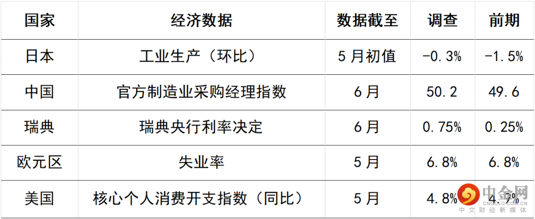 主要数据公布及市场事件
