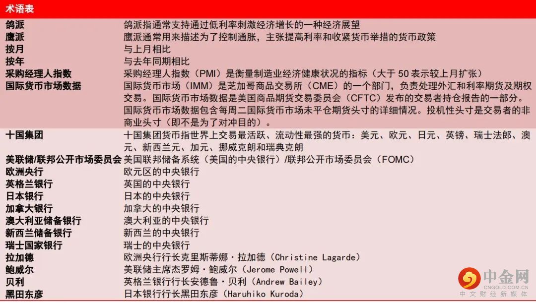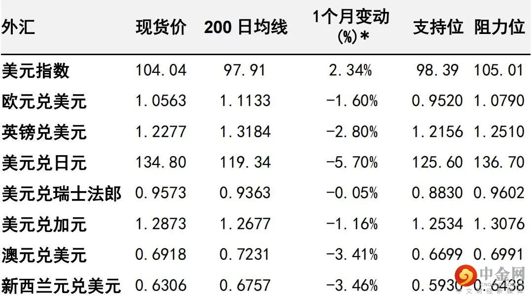 | 美元 | 我们认为,未来几周美元仍有一定的重新上涨空间。支持我们这预判的理由仍是美联储预期进一步转向鹰派及美元对全球经济衰退担忧加剧作出反应。美国6月消费价格指数(7月13日发布)可能是外汇市场的关键转折点。如果通胀数据仍然很高,可能会促使美联储在7月26-27日的联邦公开市场委员会(FOMC)会议上再次大幅加息75个基点,即使这一点已基本反映在市场价格中。除7月的政策决定外,高通胀也将以其他方式推动美元上涨。根据美联储最新指引,高通胀会降低美国经济活动减弱的迹象对美联储利率预期的影响。7月6日公布的6月联邦公开市场委员会会议纪要可能会强化以下信息,即主导美联储政策辩论的是通胀,而不是经济活动。最后,我们认为,对美元可能产生更大不利影响的经济数据是6月就业报告(7月8日公布),而不是采购经理人指数走弱或信心下降。 | 美元指数^ | ↑ | ↑ |