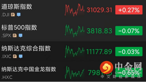周三,美股三大指数收盘涨跌不一,道指涨0.27%,标普500指数跌0.07%,纳指跌0.03%。热门中概股多数下跌,满帮跌超10%,盘初一度涨超7%。国际油价下跌,能源板块受挫,结束连续3天涨势。