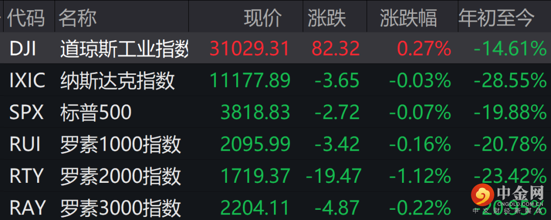 【美股】美股三大指数涨跌不一,道指涨0.27%,纳指跌0.03%,标普跌0.07%;能源板块跌幅居前;芯片股集体下跌,AMD、美光科技跌超3%,英伟达跌超2%。