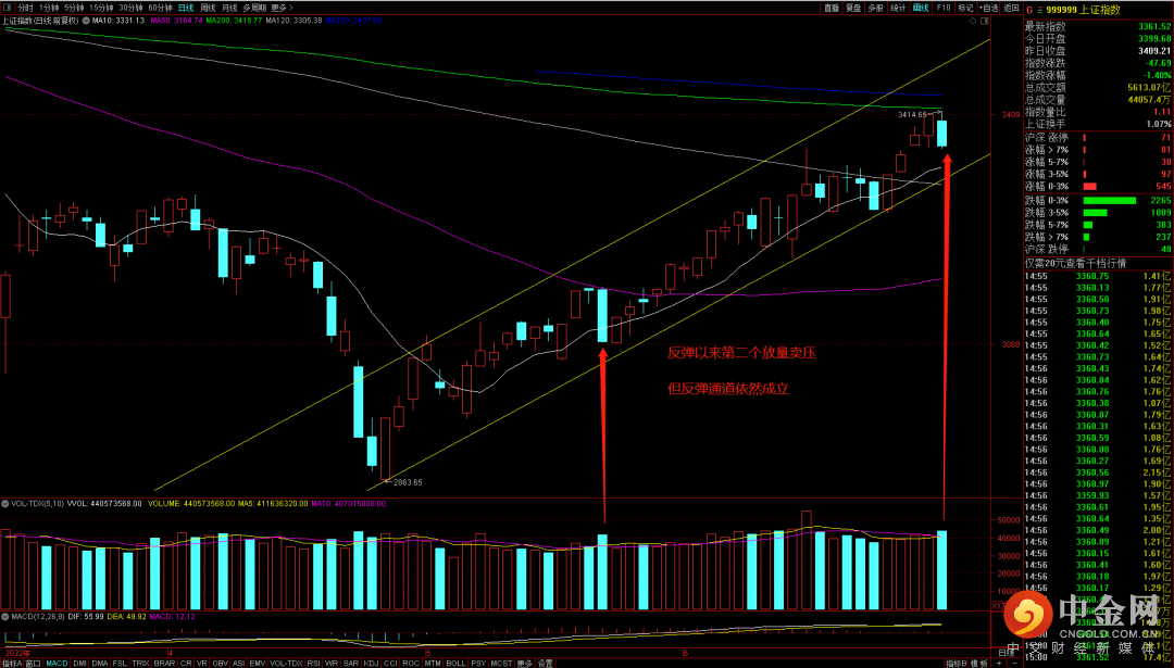但震荡幅度加剧并不代表反弹夭折,从通道线上看,目前反弹趋势依然成立,但行情进入深水期宽幅震荡和情绪效应引发的市场波动难免,后市需紧盯反弹趋势通道是否能够得到支撑。
