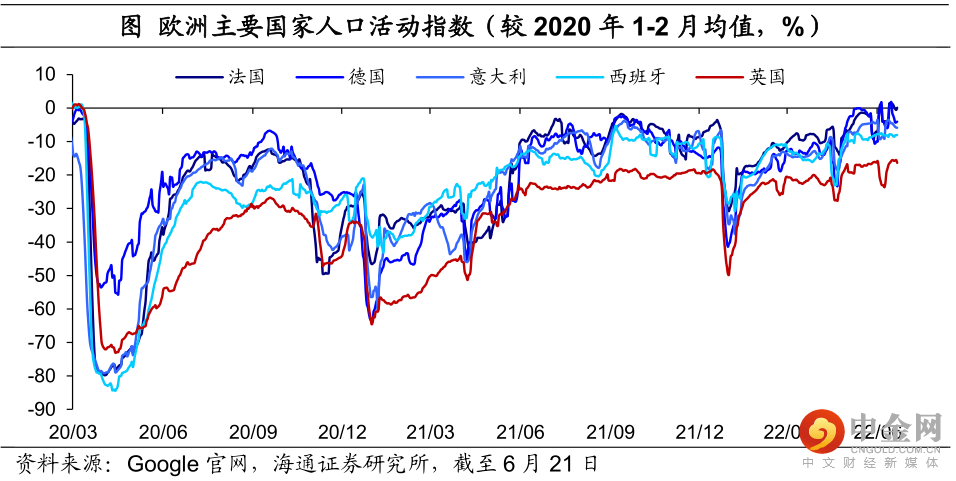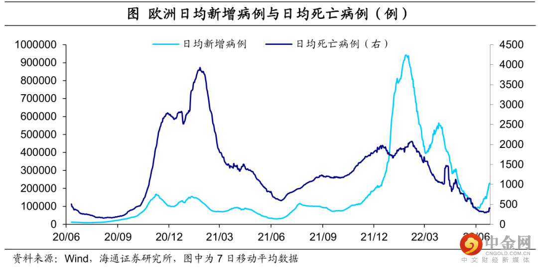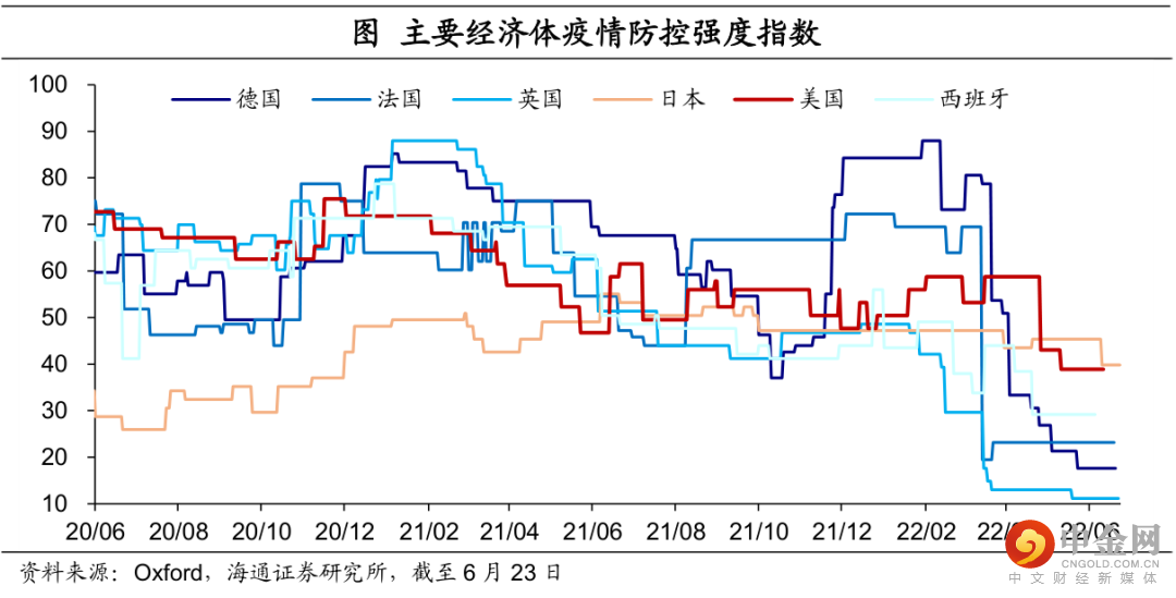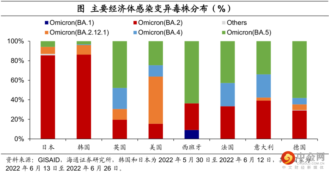 疫情与疫苗追踪:截至 6 月 24 日,美国日均死亡病例小幅缓解,住院病例继续小幅上升,但仍保持低位。而欧洲疫情继续反弹,这或与 BA.4 和 BA.5毒株的快速传播有关,特别是 BA.5 毒株,西班牙已超过 6 成,德国也接近 6成,英国接近 5 成。东南亚国家疫情持续分化。