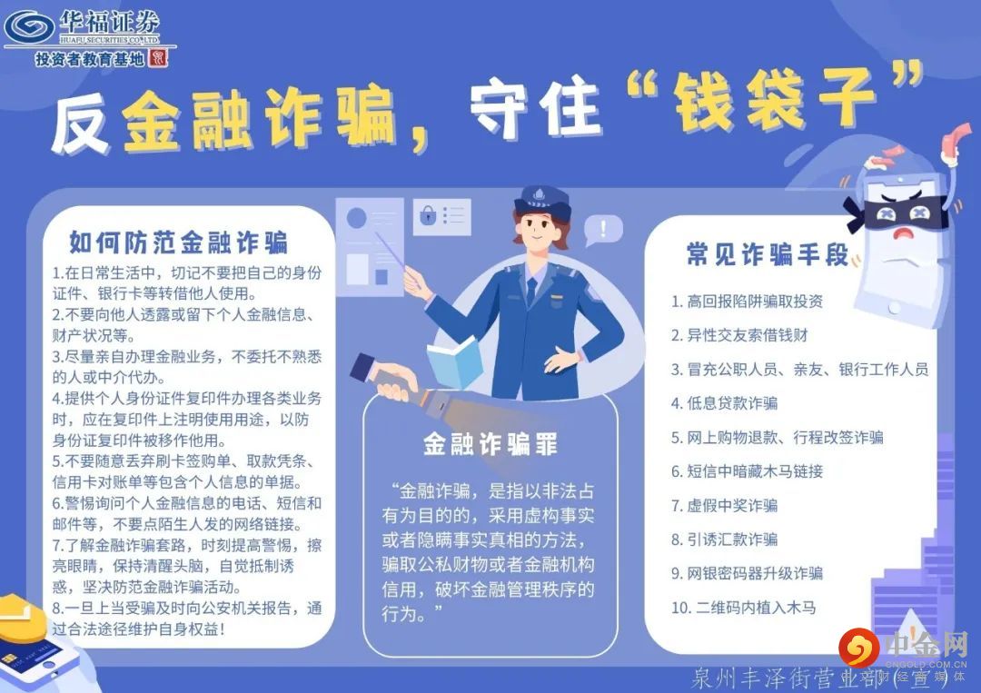 华福证券泉州分公司投教基地,地处被评为世界遗产的“宋元中国的世界海洋商贸中心——泉州”,位于丰泽街兴业银行23楼,于周一至周五9:00-17:00对外公益开放(疫情期间暂停开放),设有“投保大厅”“投资者权益之家”“上市公司之家”三个厅。2017年11月,福建证监局授予其首批“福建省证券期货投资者教育基地”牌匾。