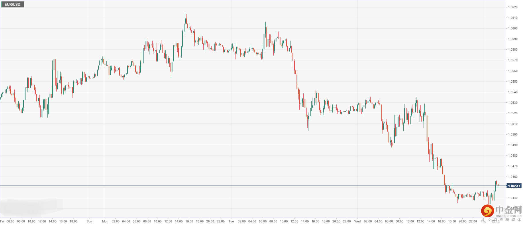 欧元兑美元周三收盘大幅震荡回落后,今日开盘跌0.72%至1.0451,由于市场大部分预测欧元区经济将陷入衰退,伴随消费信心持续在低位,使得欧元下行承压。