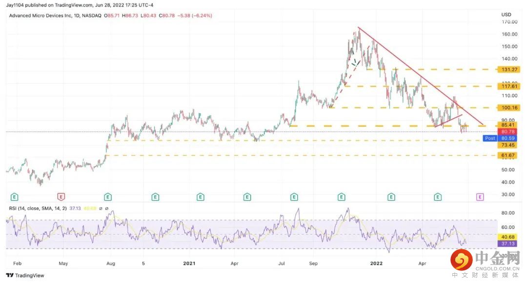 AMD公司的股票目前看起来很疲弱,跌向73.50美元的概率正在增加。仍有空缺需要填补,AMD的股价甚至可能跌至61美元。