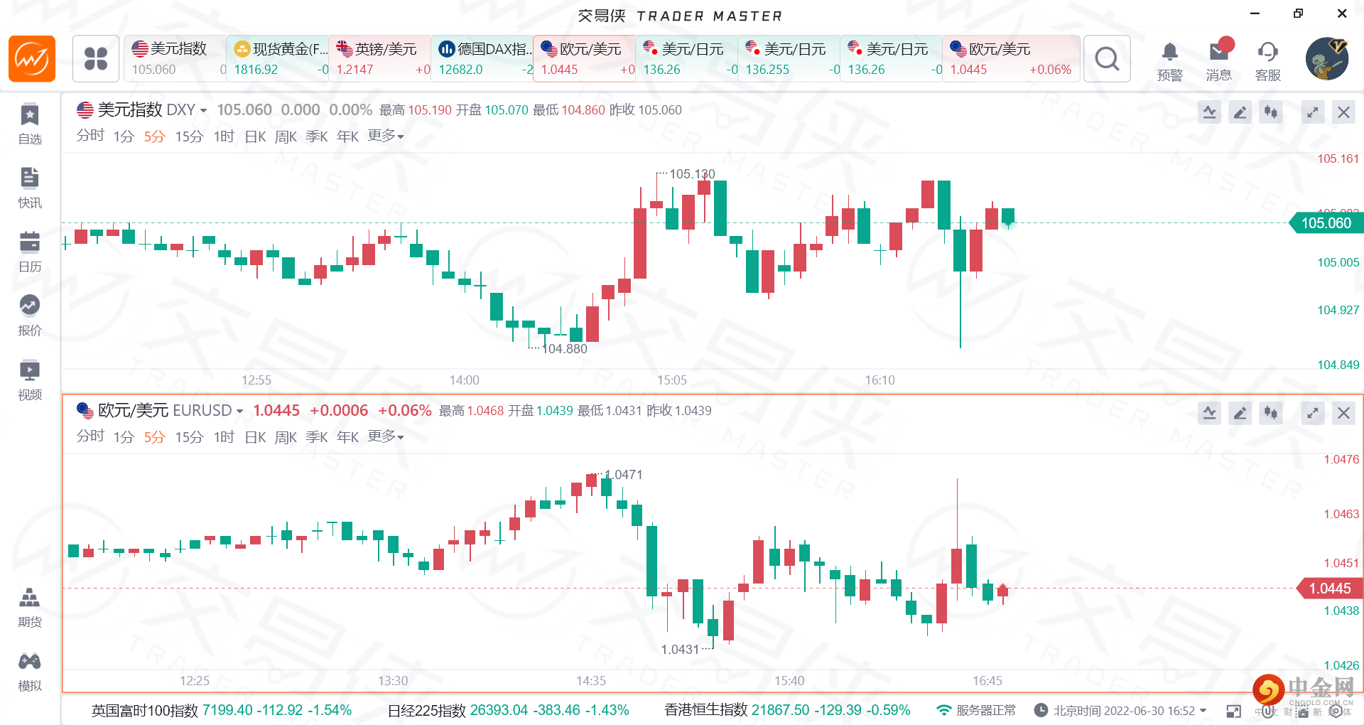 美元指数闻讯短线下挫20点,最低触及104.90。欧元兑美元短线拉升40点。