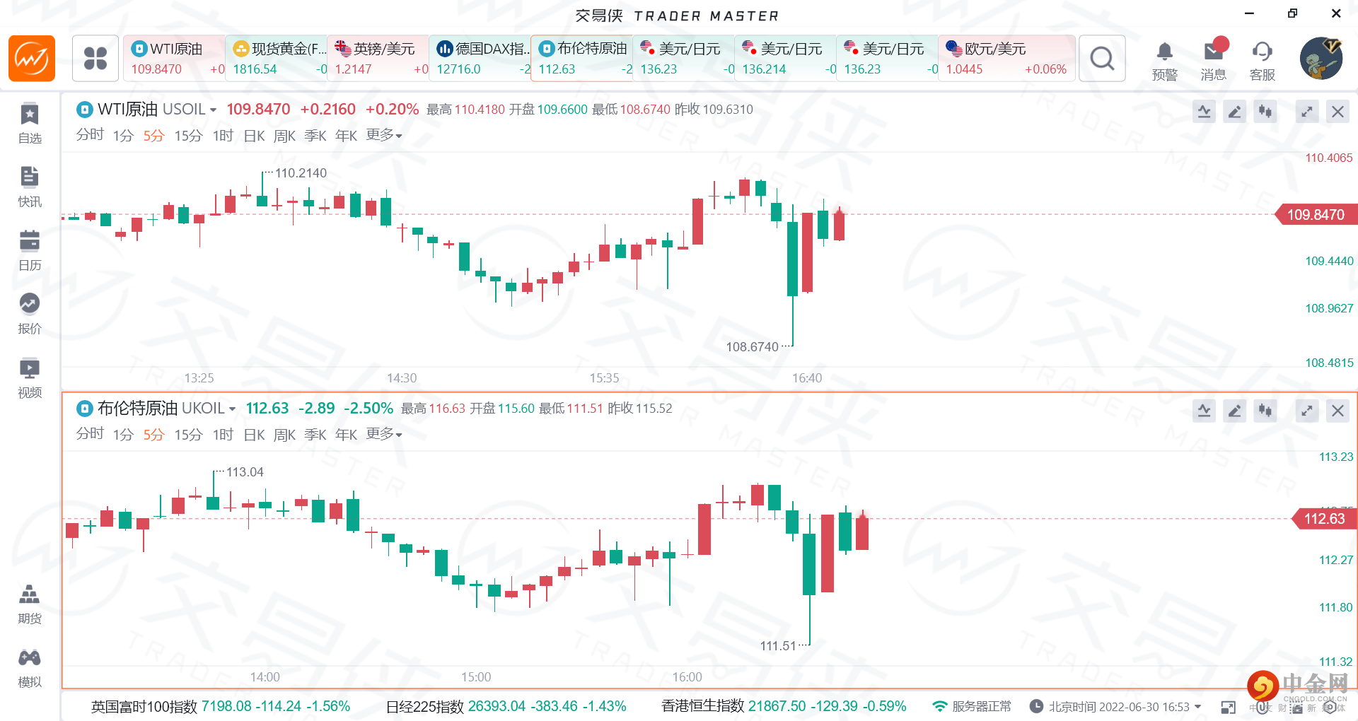 WTI原油短线下挫逾1美元,向下触及109美元/桶,随后反弹,当前已抹去此前因俄军撤出蛇岛消息引发的下挫。