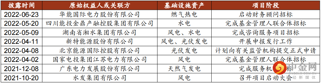 图表 部分清洁能源基础设施REITs项目进度