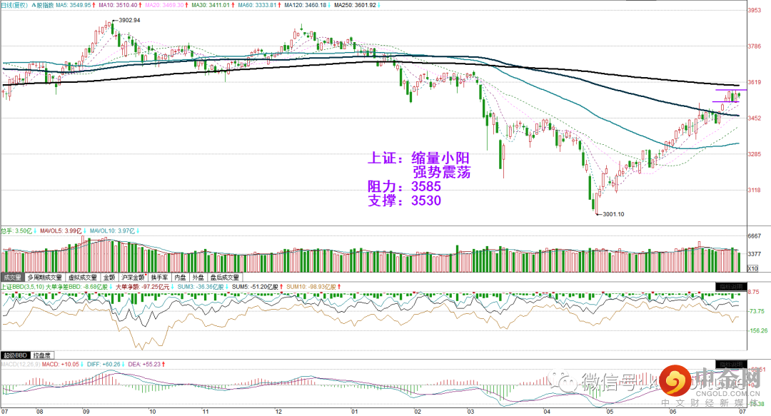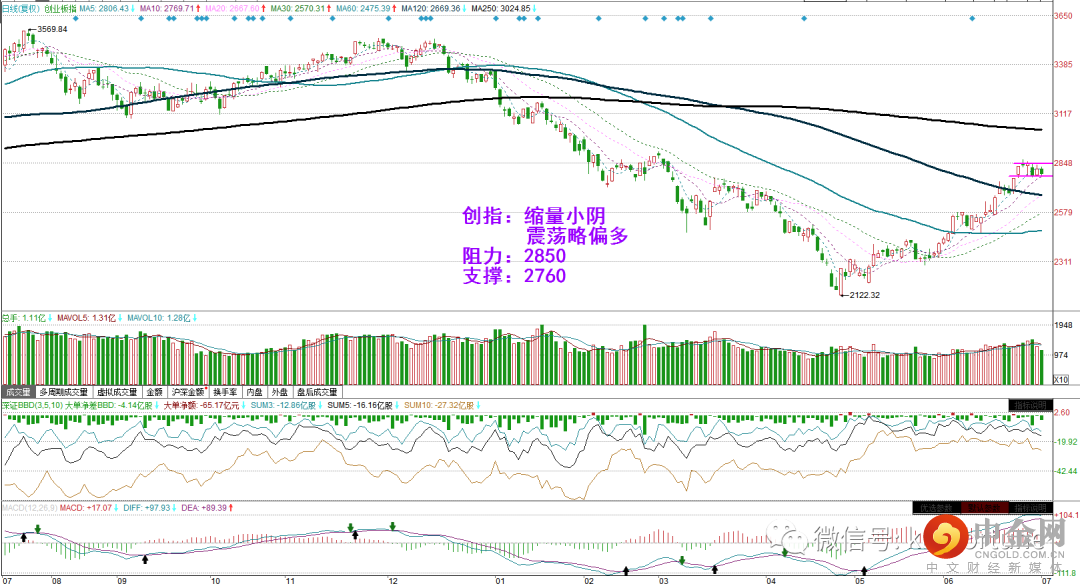 周四指数均报收中阳,短线维持偏多,但今日市场高开低走。昨日领涨的酒店机场等板块杀跌,地产等权重板块走弱影响指数走势。今日指数均收缩量小阴,日图级别或维持强势。操作上可继续持股为主,关注半年报预增板块个股。