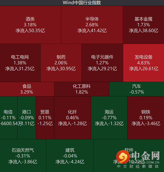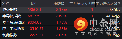 【盘面热点与亮点】白酒板块在后疫情时代消费恢复的预期下资金净流入明显。据wind主题行业看,酒类指数、半导体指数、基本金属指数、电工电网指数、制药指数等主力净流入额排名靠前。