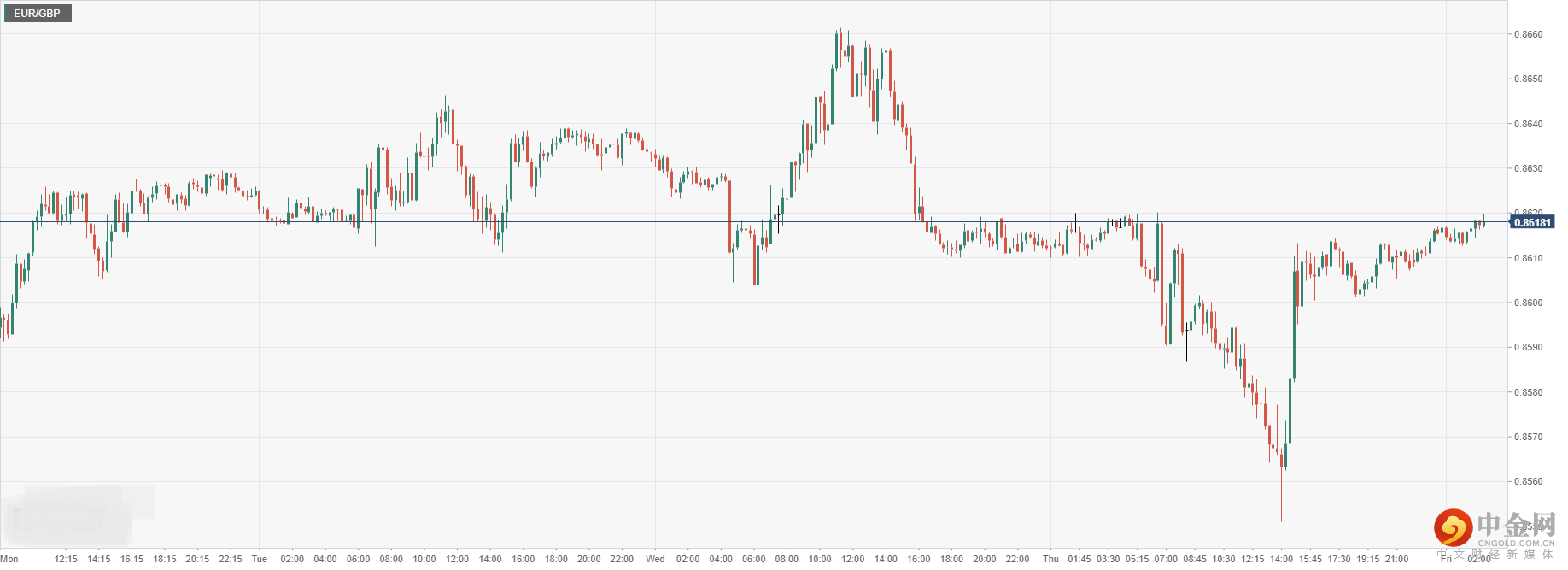 欧元兑英镑周四收盘震荡后回升,今日开盘盘整在0.8618附近,由于欧元区数据普遍趋疲,尤其在德国经济指数,使得欧元上下波动震荡。