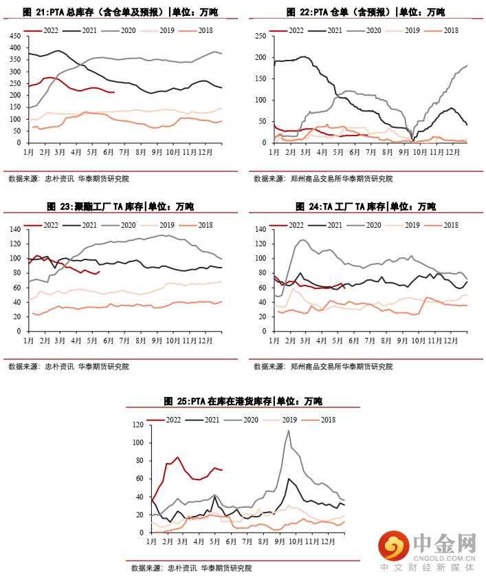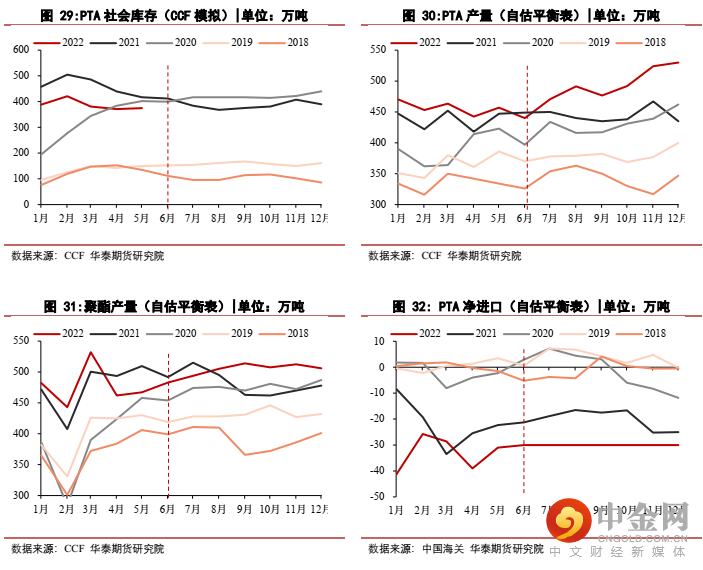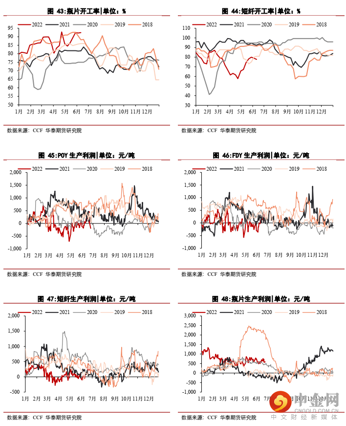 (1)下游方面,聚酯投产兑现非常慢,年初2022年聚酯产能计划新增678万吨,然而2022年1-6月新增产能仅235万吨,兑现偏慢,预计2022年下半年偏悲观仅165万吨新增产能左右兑现,全年新增产能约400万吨,全年聚酯产能增速仅5.9%。