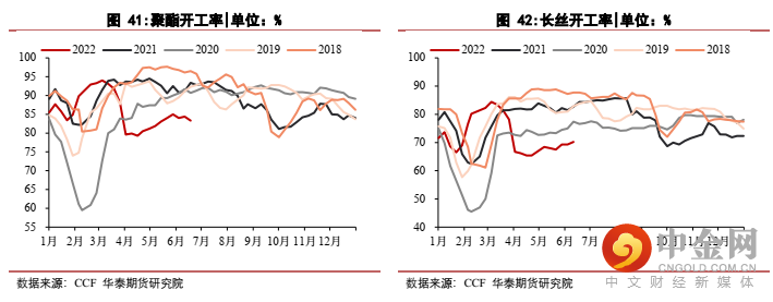 聚酯方面。终端负荷低位,新增订单恢复缓慢,对原料备货积极性差。长丝库存历史高位,压制聚酯开工,从而压制TA需求。对需求不乐观的背景下,下半年聚酯开工率仅放在84%-88%范围预估。