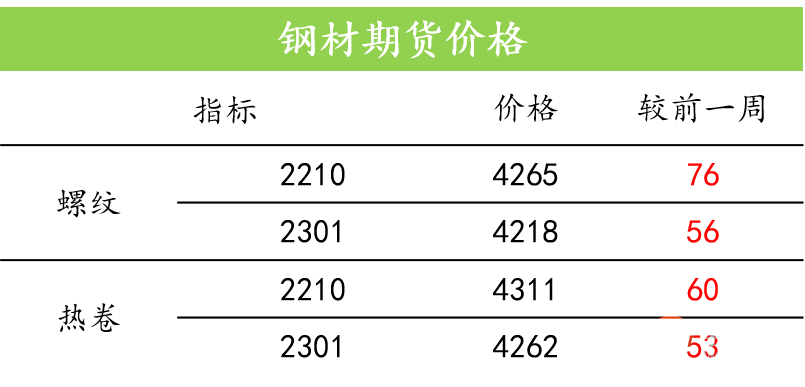 上周全国建筑钢材市场探底回升。随着疫情缓和,终端需求开始反弹,产量和库存双降,市场信心逐渐得到修复,盘面上涨也带动现货情绪走高,建筑钢材价格探底回升。