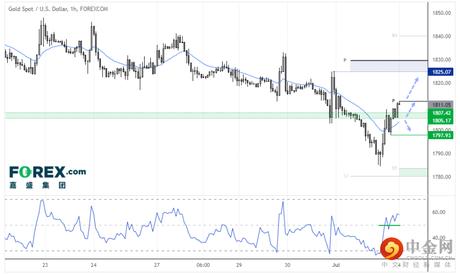 黄金上周守住100周指数移动均线,收盘回到1800上方,形成十字星。上周五日图形成看涨pinbar,警示波段低点就位且1800下方筑有买需。小时图动能向上,而且RSI高于50,表明情绪积极。如果可以守住1805-18047支撑区域,我们期待站上1812 /周图枢轴位预示涨势延续可期。
