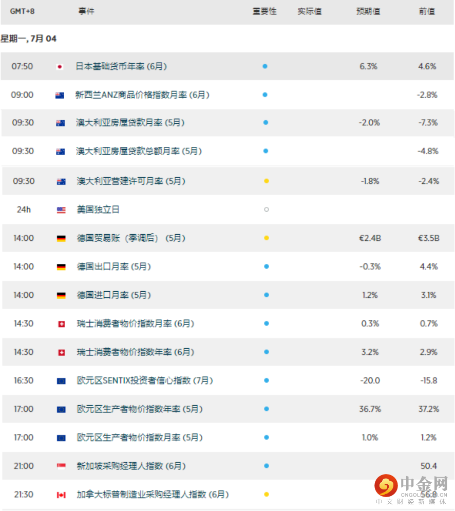 周一(7月4日)是美国公众假期,美国交易所关闭,货币交易市场可能比平常安静。