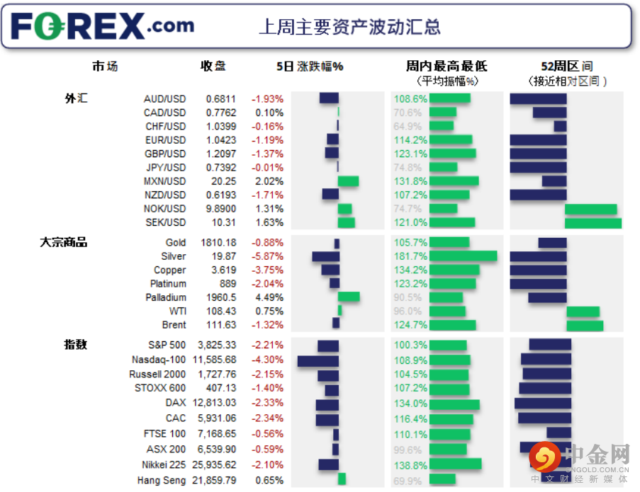 上周五驱动国际市场的依然是对全球经济衰退的担心心理,美元指数当天逼近21年高点。