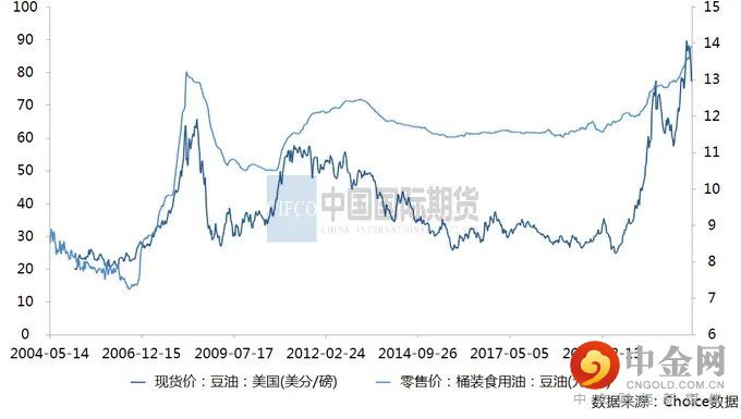 图2-3:美国豆油现货价、豆油桶装油现货价