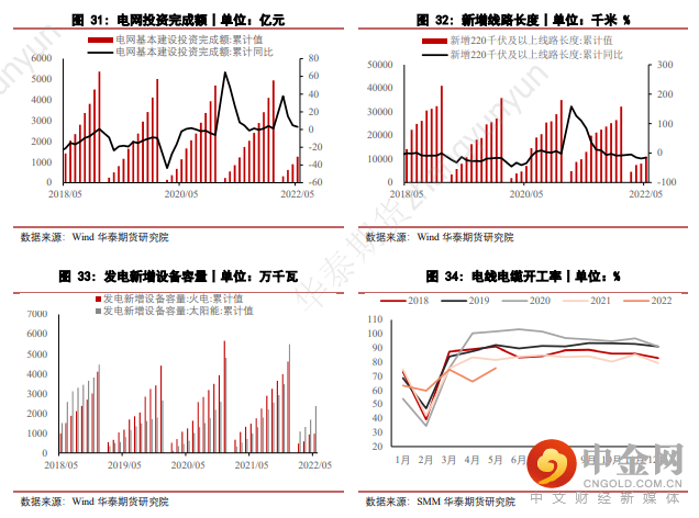 就需求复苏的节奏而言,4、5月所公布的电线电缆企业开工率数据明显低于往年同期水平,显示出疫情对于整个的严重冲击不容忽视。而6月以来,市场宏观环境不理想,终端需求没有出现显著改善迹象,预计3季度初期市场仍将继续消化美联储加息对全球经济展望所带来的负面影响。但基于中国方面对于基建板块的重视以及对于稳经济增长的决心,因此预计在3、4季度交替之际,电力板块需求对铜整体需求的支撑将会显现。