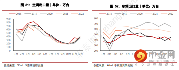 在家电出口方面,由于2021年在内需相对较弱的情况下,出口对于家电的需求起到了较为明显的提振作用,不过在今年疫情冲击以及去年相对较高基数的背景下,目前家电板块前4个月出口表现同样不甚理想,除去冰箱出口数据尚可,其余家电出口数据均不尽如人意。